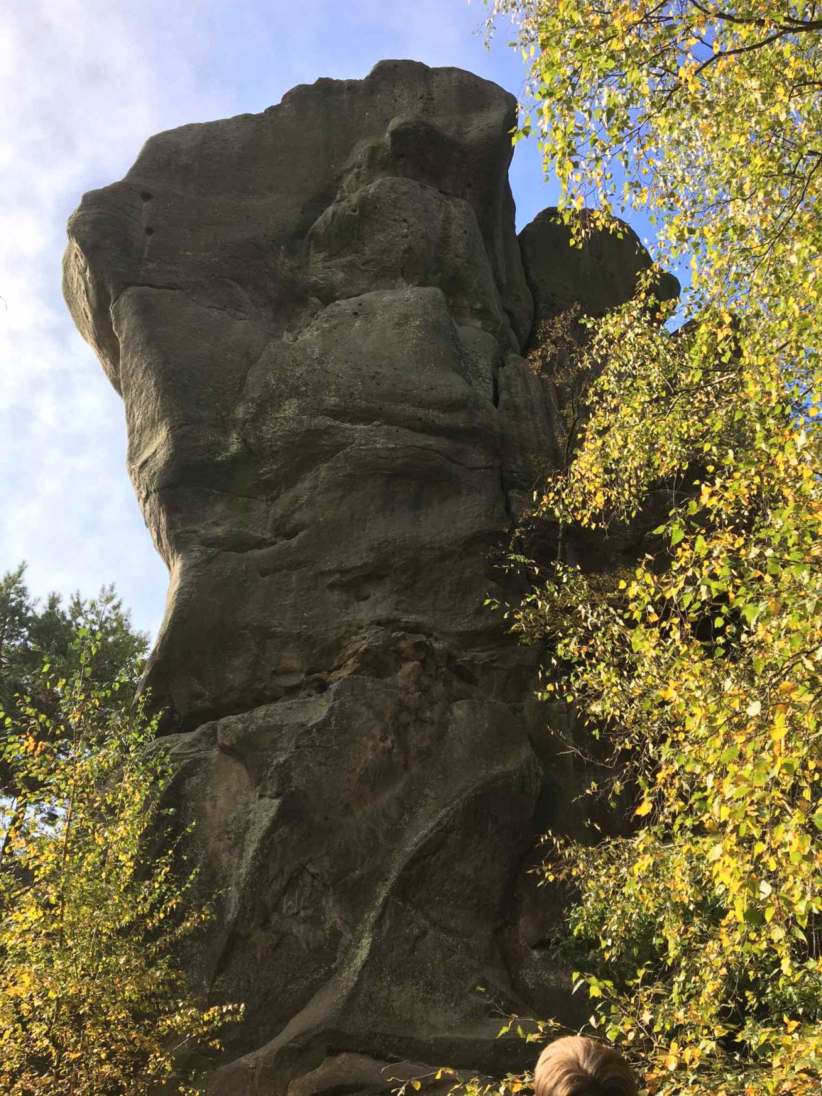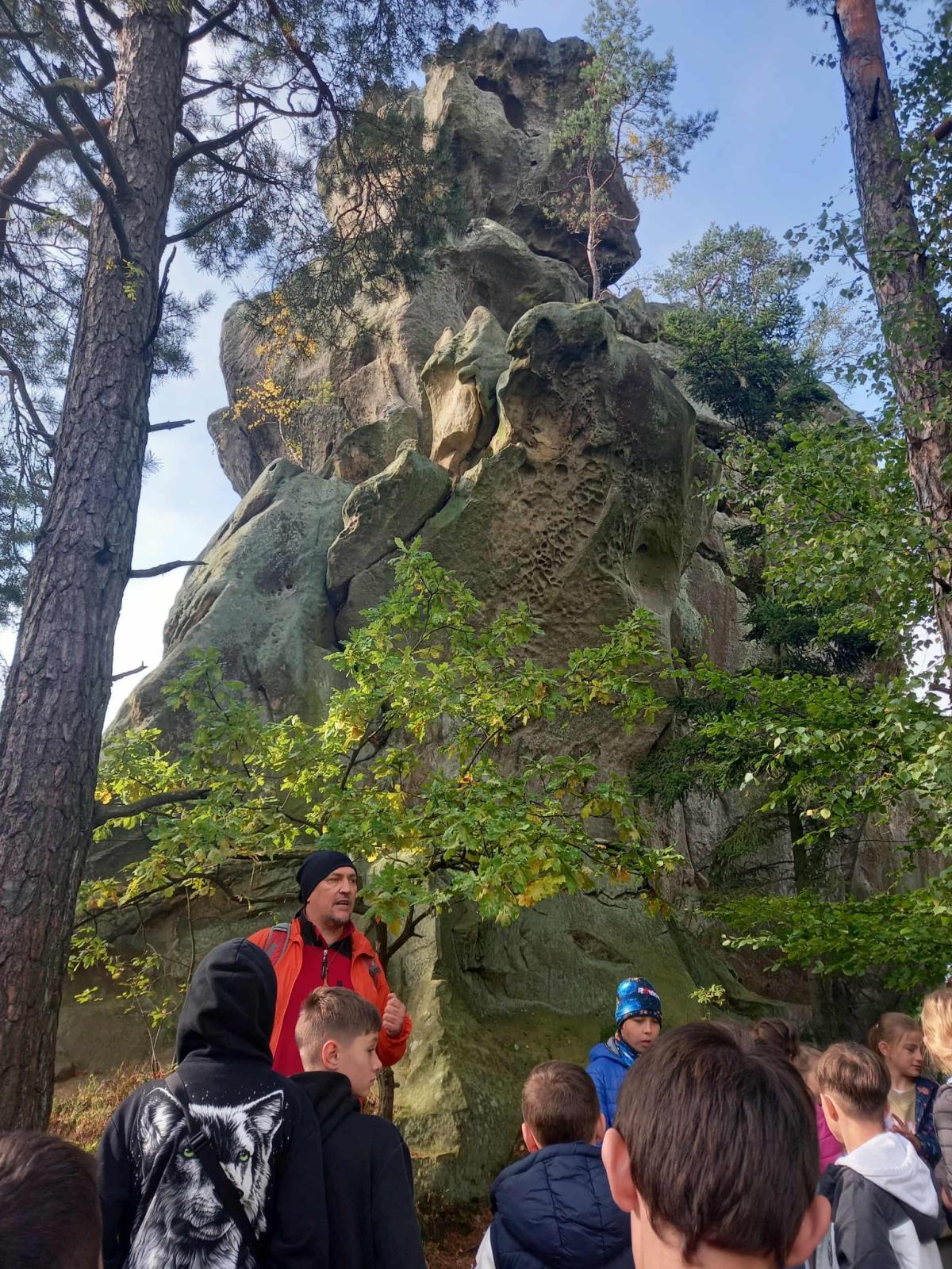 Pierwszym punktem programu był spacer po Rezerwacie „Prządki”, gdzie podziwialiśmy niezwykłe formacje skalne z piaskowca, wznoszące się na kilkanaście metrów! Z miejscem tym związana jest też ciekawa legenda…