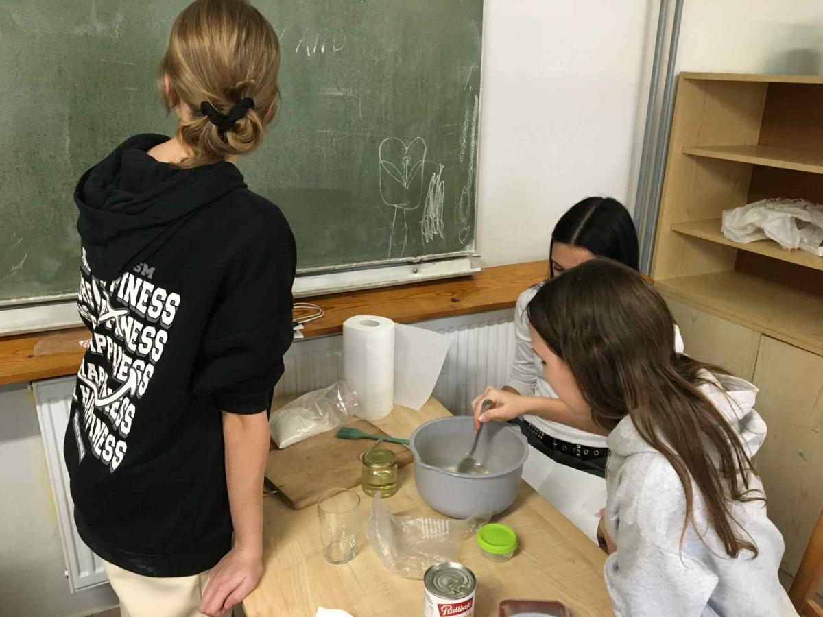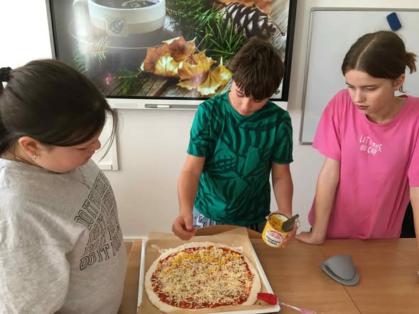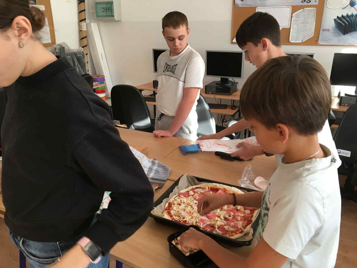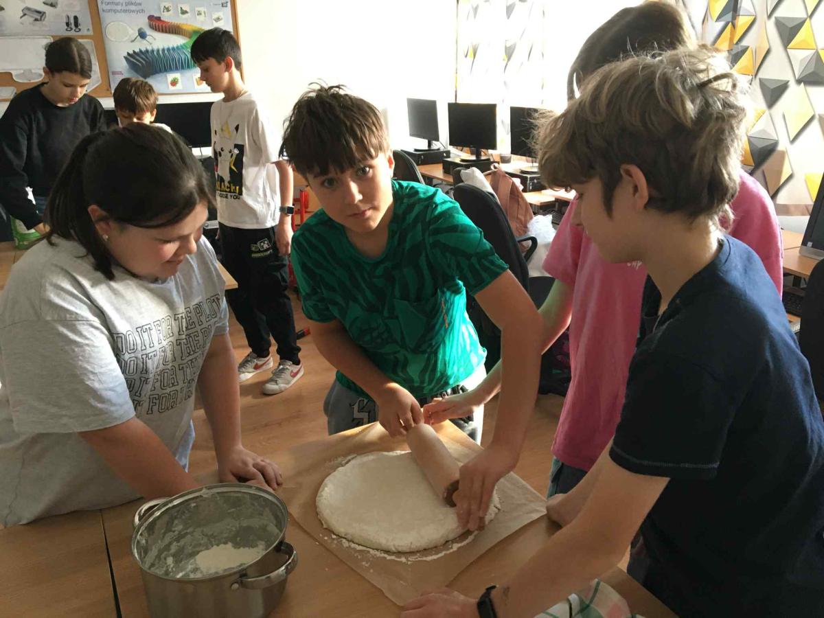 Uczniowie połączyli naukę języka z praktycznymi umiejętnościami — tłumaczyli przepis na pizzę, a następnie wykorzystywali wiedzę matematyczną, aby odpowiednio odmierzyć składniki.